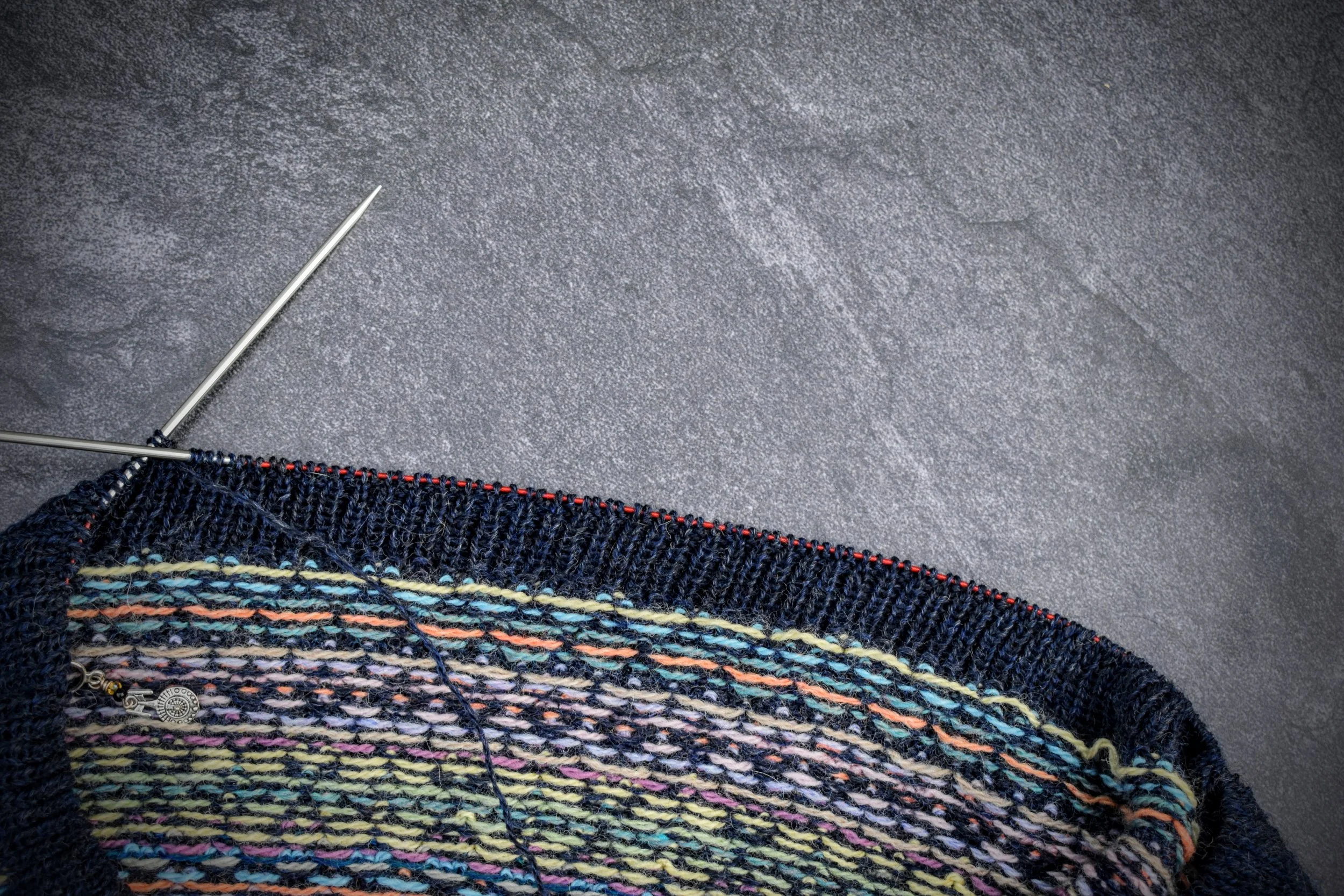 Most of the things that I’ve designed in the past, I can no longer design until my elbows are fully healed. I sure have had a tendency toward making things that require picking up stitches, whoa! But for the next year, or two, you’ll be seeing a lot of colorwork, stockinette, and lace from me, nearly all of it in the round and at loose gauges, and very little picking up stitches or purling. This new focus is so that these elbows can get back to being as normal as possible, but at the same time still take part in what they love to do — knitting!